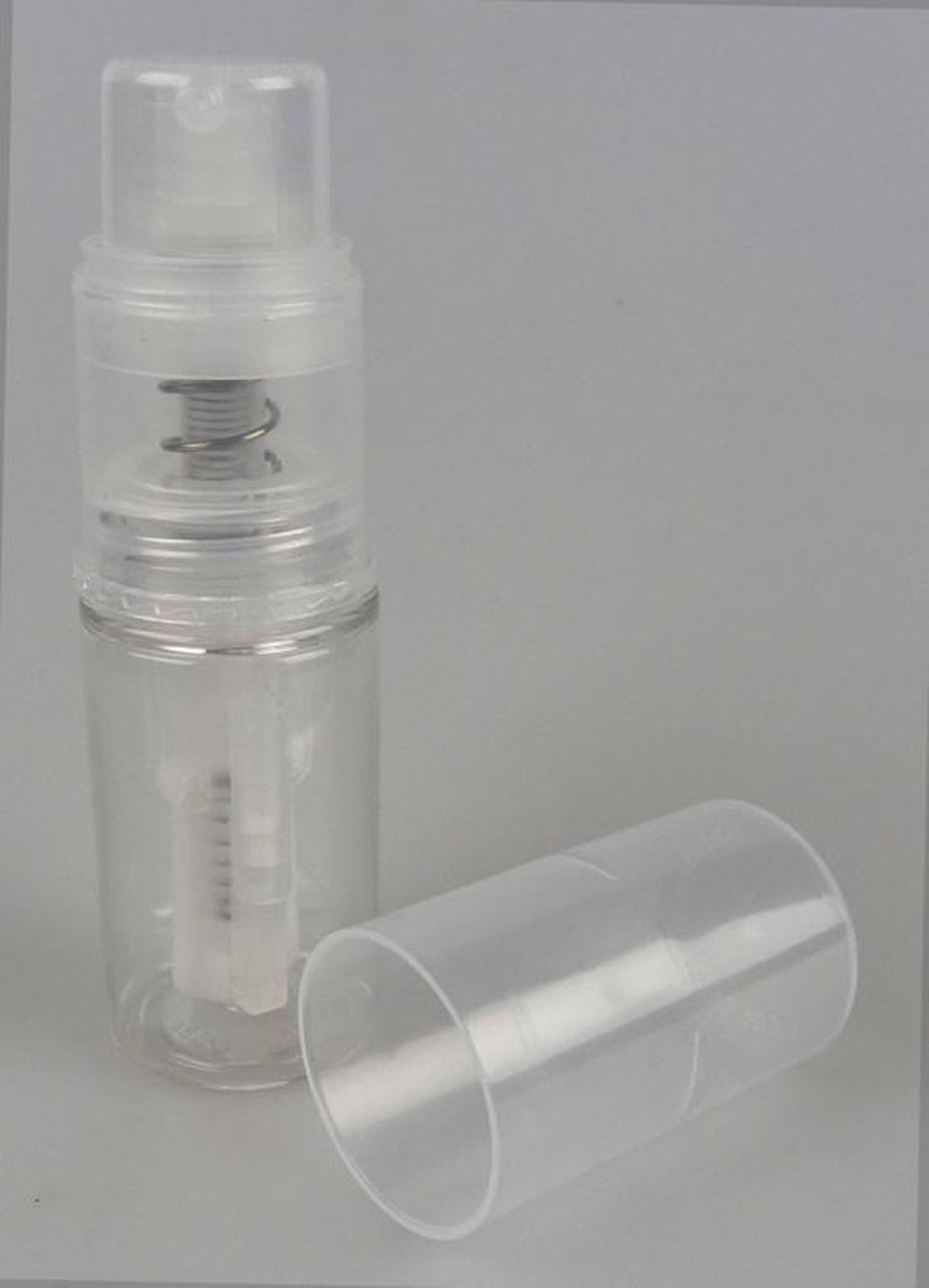 (Glitter) Poederspuitfles 14ml. Dit flesje kun je zelf vullen met fijne glitter. Je kunt het vervolgens mooi gelijkmatig verstuiven over lijm. Ideaal voor kaarten maken, maar ook over bloemstukjes, keramiek, gips, klei, hout, en allerlei ander te decoreren materiaal.