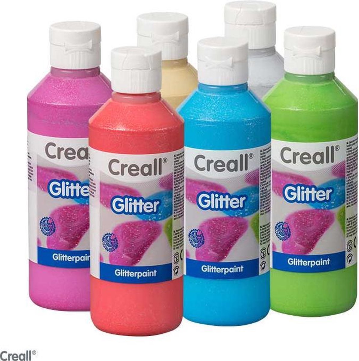 Gekleurde verf met glitters Gebruiksklaar Goede hechting op papier, karton en foam Na droging watervast Kleur: Rood, blauw, groen, cyclaam, zilver en goud Kleuren van uw beeldscherm kunnen afwijken van de daadwerkelijke kleur van het product. Bevat benzisothiazolinone, chloromethylisothiazolinone en methylisothiazolinone. Kan een allergische reactie veroorzaken.