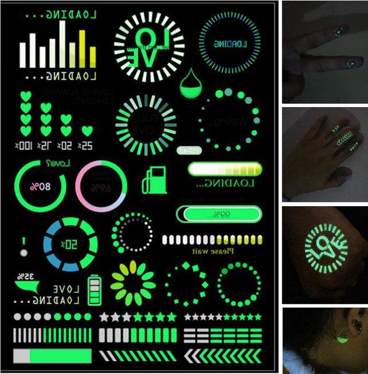 Met deze tijdelijke Glow in the dark tattoo voor jong en oud kan je uitproberen of een Tatoeage wat voor jou is. Deze tatoeage's zullen oplichten wanneer jij je in het donker bevind, maar ook onder blacklight zullen de tatoeage's oplichten. Ook zijn deze lichtgevende tatoeage's enorm gaaf voor op een festival, mensen zullen denken dat je een echte tattoo hebt! Of je kan deze gebruiken bij dagen zoals halloween of carnaval. Deze tattoo blijft minimaal 5 tot 10 dagen zitten en is eventueel te verwijderen met alcohol Deze tattoo is dermatologisch getest! Afmetingen van totale tatoo vel: 20x15cm