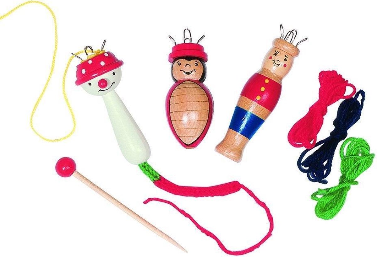 Goki punniken paddenstoel Punnikklos in paddenstoel vorm is 10,5 cm groot. Inclusief 4 wollen draden en een houten naald. Geschikt voor kinderen vanaf 4 jaar. Materiaal: hout