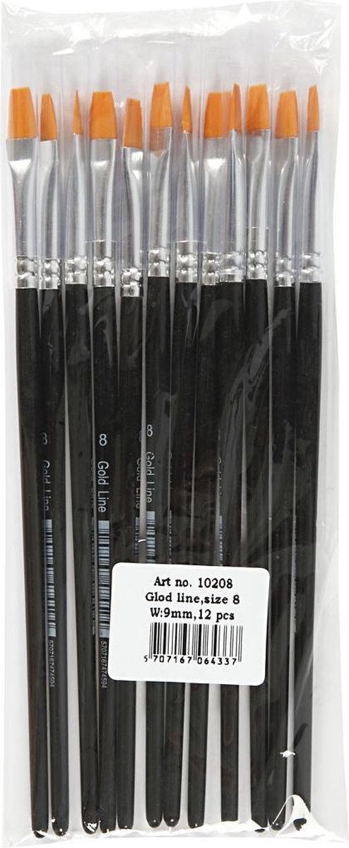 Excellente ronde all-round penselen met nylon synthetisch haar en korte houten steel. Geschikt voor zowel dunne als dikke verven.Excellente platte all-round penselen met synthetisch nylon haar en korte houten steel. Geschikt voor zowel dunne als dikkere verven.