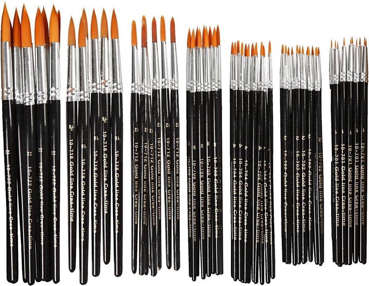 Excellente ronde all-round penselen met nylon synthetisch haar en korte houten steel. Geschikt voor zowel dunne als dikke verven.Excellente ronde all-round penselen met nylon synthetisch haar en korte houten steel. Geschikt voor zowel dunne als dikke verven.