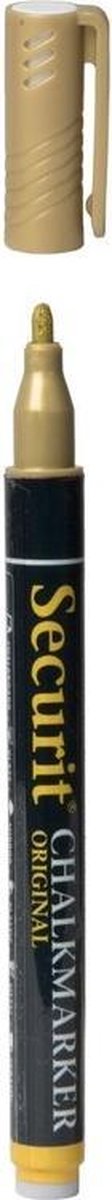 Een gouden stift om op een krijtbord/krijtfolie te schrijven. De stift heeft een ronde punt, 1-2 mm. Bestand tegen smeren, vervagen en lichte motregen. Makkelijk te verwijderen met een vochtige doek. De stift is naast krijtbord tevens geschikt voor o.a. glas en keramiek. U ontvangt 1 stift.