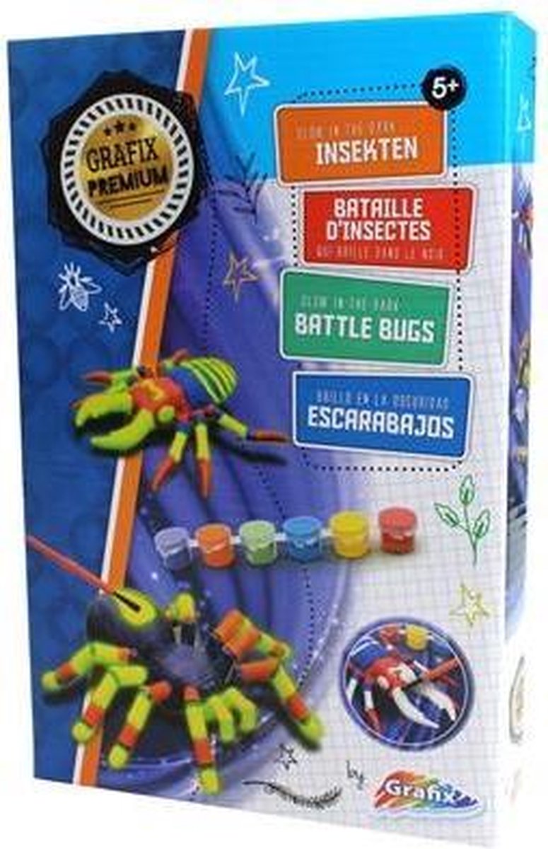 Verf en maak jouw eigen insecten. Verf ze met de bijgeleverde verf in mooie Glow in The Dark kleuren. In de doos zit een Spin en een Kever