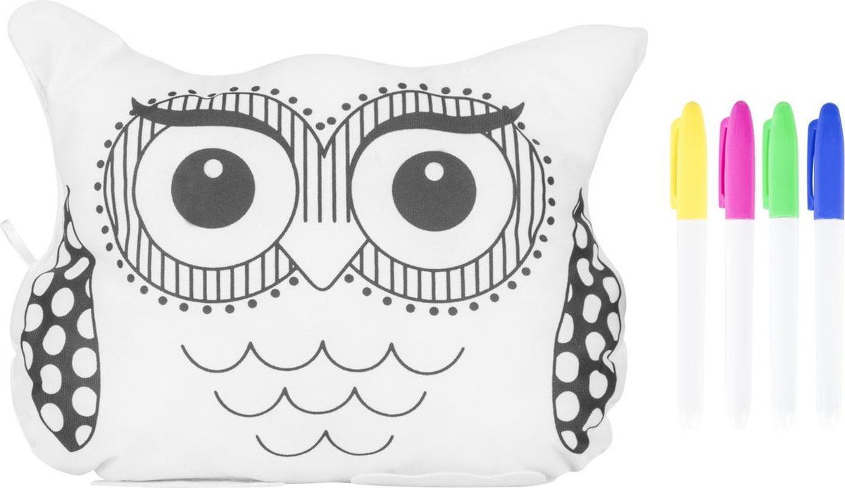 Grafix kleur je eigen Doodle Buddy Owl Laat je creativiteit erop los en gebruik je rijke fantasie met het inkleuren van deze Doodle Buddy van Grafix. Wordt geleverd inclusief vier stiften in de kleuren paars, blauw, oranje en geel. Specificaties: Kleur: wit Geslacht: junior Materiaal: katoen Afmetingen Doodle Buddy: 28 x 20 cm (lxb) Leeftijd: vanaf 5 jaar Inhoud: 1 Doodle Buddy 4 Stiften