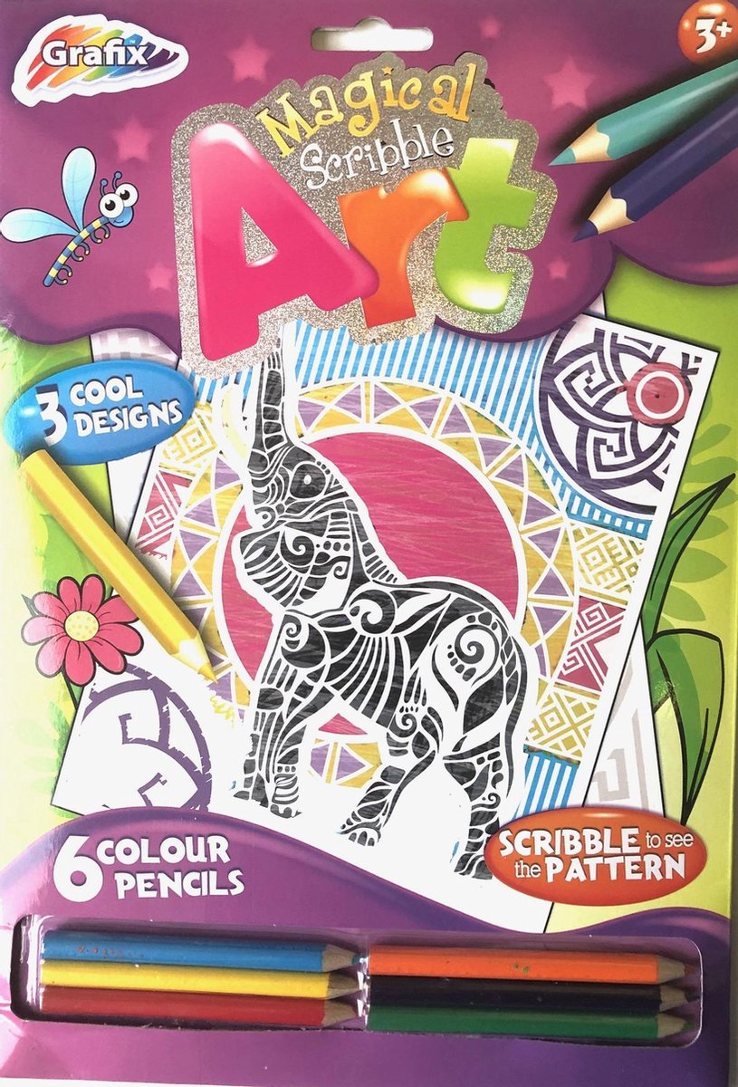 - kleur de kunstvellen licht in met de kleurpotloden om de coole ontwerpen te onthullen Inhoud: 3 kunstvellen 6 kleurpotloden