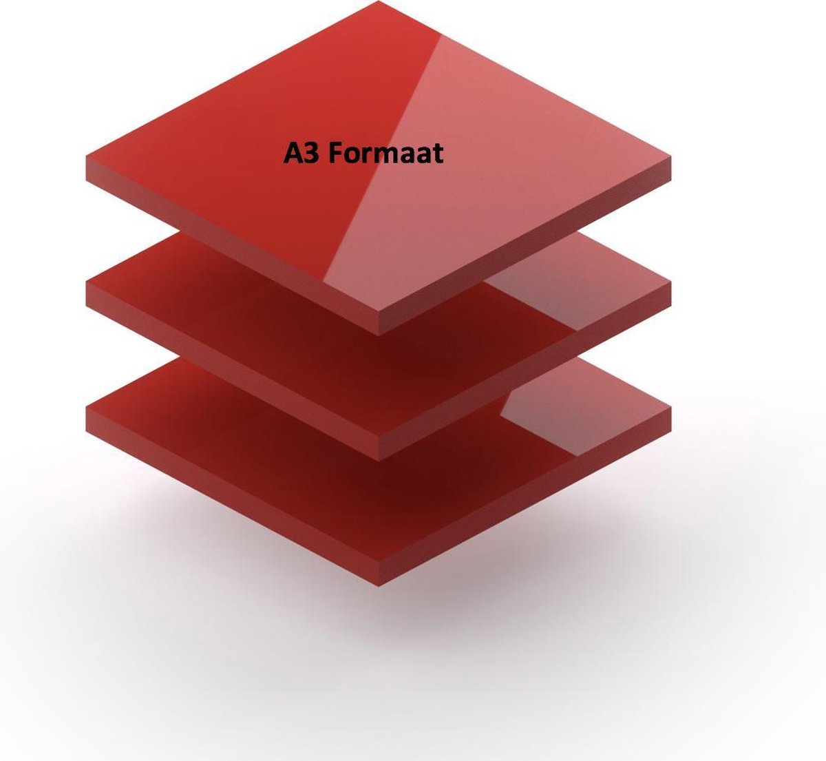 Plexiglas 3mm rood geleverd op het formaat 29,7 x 42 cm 5 stuks van Greenbasic® Plexiglas 3mm op het formaat 29,7 x 42 cm. Dit artikel bestaat uit 5 platen plexiglas in de kleur rood. Al ons plexiglas is met zorg geselecteerd. Uit dit formaat kunt u een aantal mooie werkstukken lasersnijden. Natuurlijk ook te gebruiken voor andere doeleinden. Bevat de volgende kleuren Plexiglas 3mm rood. - 5 stuks.