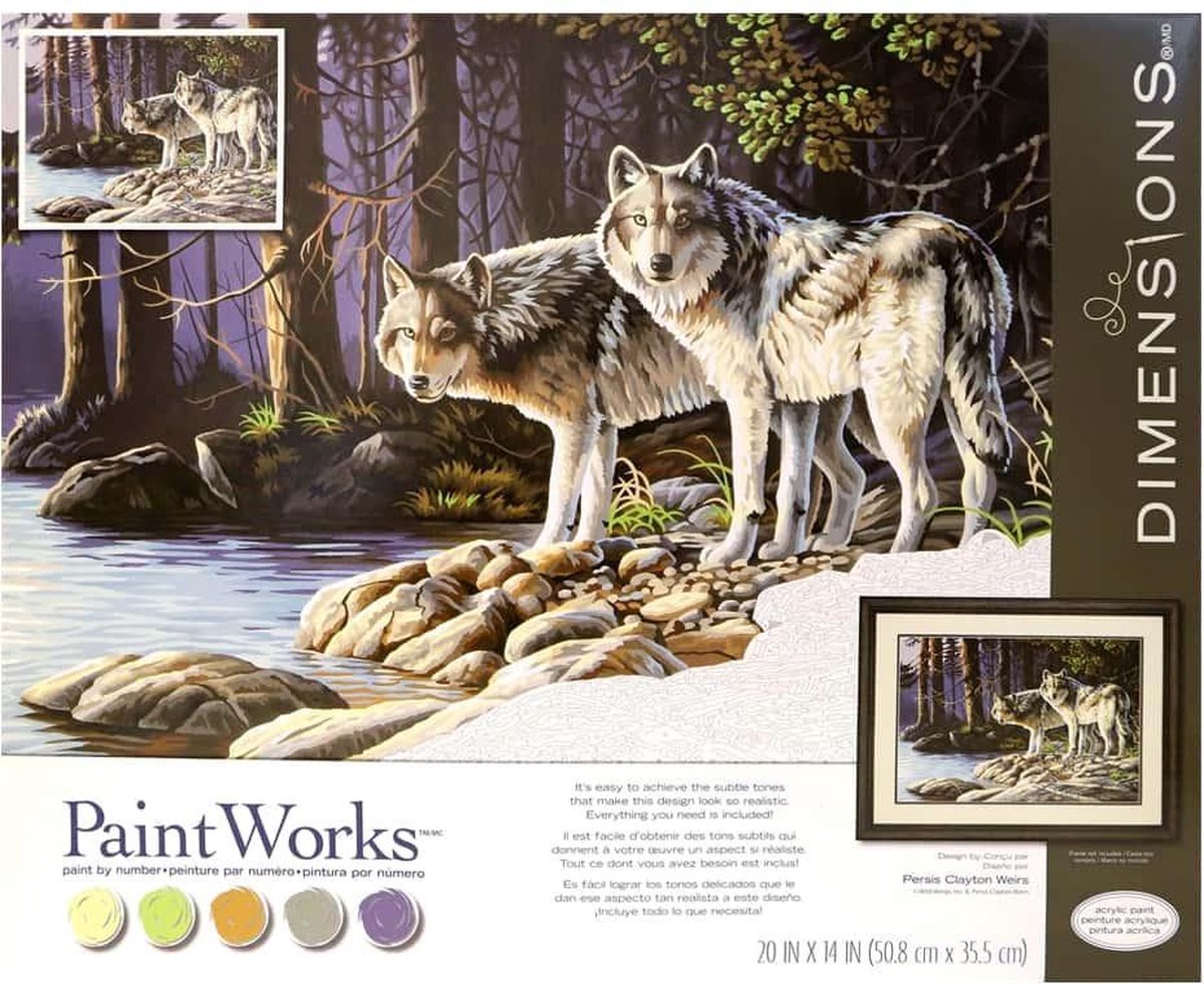 Grijze wolven Schilderen op nummer. Je maakt Schilder op nummer schilderij in het formaat . Je ontvangt een los canvas met daarop enkel de lijnen en nummers. Door de genummerde vlakken in te schilderen met de juiste kleuren verf, creëer je je eigen schilderij. Door jou geschilderd met schilder op nummer! Dit schilderij wordt geleverd inclusief: -Canvas met lijnen en nummers -Voldoende potjes en kleuren acrylverf -Penseel. Schilderijen kunnen licht afwijken van de productafbeelding.