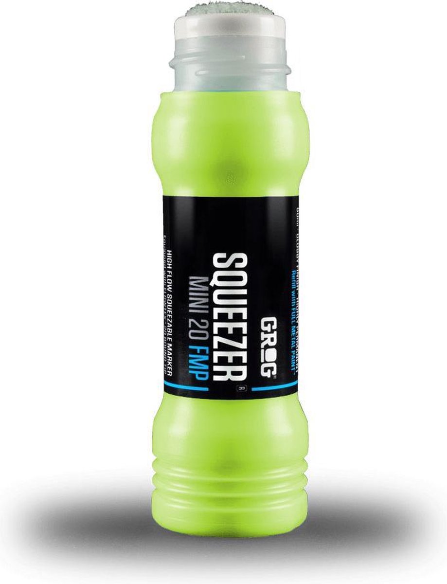 Full colour plezier in miniatuurformaat. Hoewel de GROG Squeezer Mini Paint marker (20mm) in pocket size komt is hij met zijn 20mm brede Flowtex Round Tip niet te onderschatten! Intensive kleuren en vette drips zijn geen probleem voor deze marker. De marker is eenvoudig bij te vullen en nodigt uit tot genereus kleur gebruik. De kwaliteit tip blijft zelfs onder zware druk in vorm. Mini-formaat big drips!! – soft squeeze body – 20 mm Flowtex tip (uitwisselbaar) – sterke verf-flow – navulbaar via de tip – Full Metal Paint, verf op alcohol basis – perfect dekkend op alle ondergronden – sneldrogend – xyleen vrij
