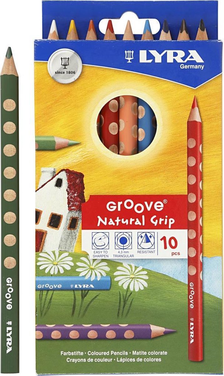 Ergonomische, driehoekige kleurpotloden met natuurlijke greep-zone.Ergonomische, driehoekige kleurpotloden met natuurlijke greep-zone.