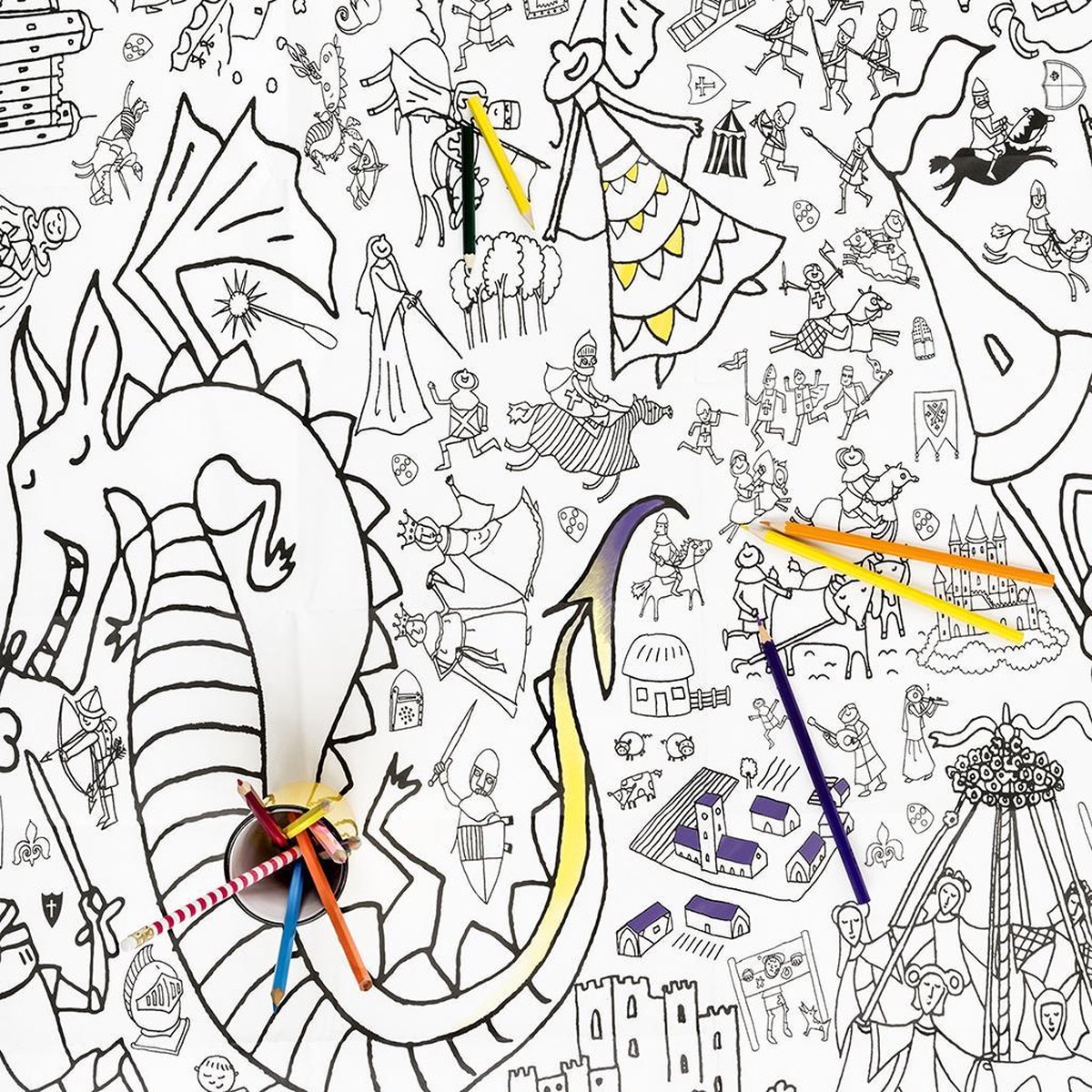 Giant kleur in Poster / Tafelkleed is een leuke inkleuring voor alle leeftijden en alle gelegenheden. Boordevol illustraties van middeleeuwse chaos, prinsessen, kastelen en draken, ze zijn perfect voor kinderfeestjes, vakanties, regenachtige dagen en altijd speeltijd. Giant inkleur Poster / Tafelkleed werkt even goed als speelmat en poster. Ze helpen een beetje rust in de dag te brengen en bieden het perfecte tegengif voor al die schermtijd . En als de kinderen bezig zijn in te kleuren, kunnen de volwassenen heerlijk van de rust genieten - en misschien ook genieten van een inkleuring therapie ! Groter (1270 mm x 950 mm) dan de meeste 'gigantische' in te kleuren posters op de markt. Opvouwbaar tot een klein (250 mm x 150 mm), lichtgewicht en mooi verpakt product dat gemakkelijk is mee te nemen of in de post te stoppen - het perfecte cadeau. Gemaakt van speciaal, duurzaam, FSC-geaccrediteerd papier. Geschikt voor kleurpotloden, krijt, verf, pastel stiften en viltstiften Groot