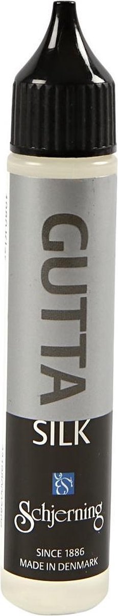 Gutta wordt gebruikt voor het maken van lijnen en zo het vloeien van de verf te controleren.Gutta wordt gebruikt voor het maken van lijnen om zo het vloeien van de verf tijdens het zijde verven te controleren.