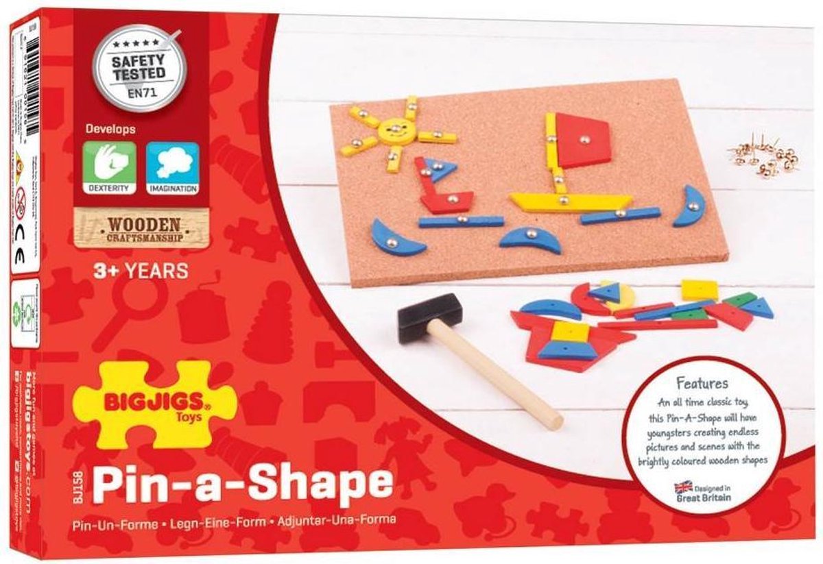 Deze klassieke versie hamertje tik van Bigjigs wil iedereen toch hebben! Bestaat uit een plankje van zacht board met 126 losse onderdelen (figuurtjes en spijkertjes), inclusief hamertje.