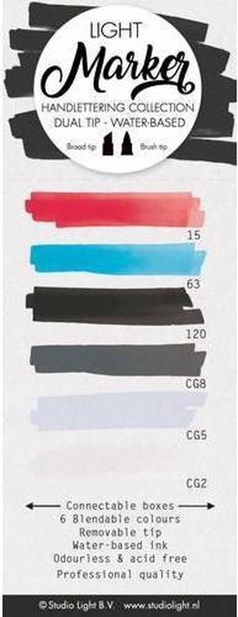 Handlettering - Box 6 water based dual tip markers bright Connectable Boxes 6 Blendable colours Removable tip Water based ink Odourless & acid free Professional Quality