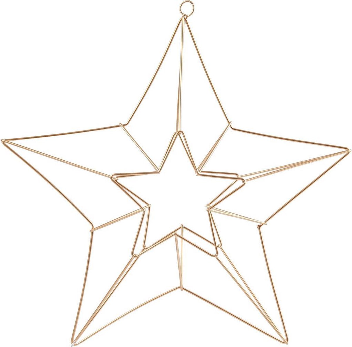 Creative hangende ster Grote ster van staal met ophangoog om een ruimte op te vrolijken en te versieren met de Kerstdagen. Specificaties: Geslacht: junior, unisex Kleur: koper Materiaal: staal Afmetingen: 34 x 30 cm (LxB) Leeftijd: vanaf 6 jaar