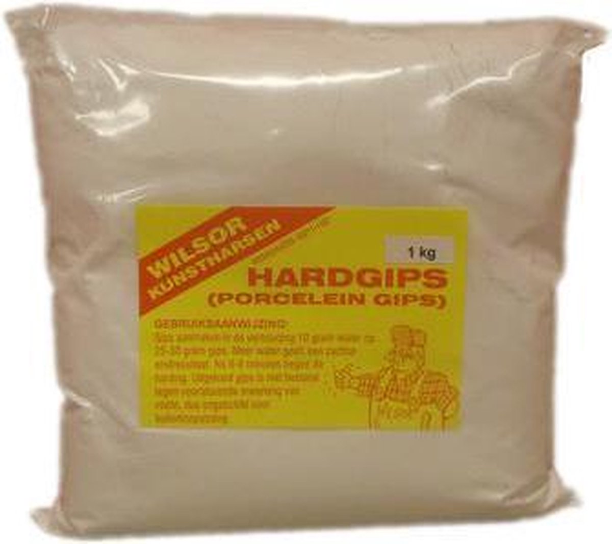 Een mooie extra harde gips. Bij 1 gewichtsdeel water kan 2,5-3 gewichtsdeel gips en begint de harding na ± 7min. Bij minder water gaat het sneller en wordt het gips sterker. Men kan het gips sneller uithardend maken door toevoeging van wat (1%) keukenzout bij het aanmaakwater of door toevoeging van wat portlandcement (enkele procenten) door het gips. Teveel geeft problemen. Geleidelijk aan uitslag door het zout en scheuren door het portlandcement. Langzamere uitharding door max. 0,5% borax door het aanmaakwater te mengen. Porseleingips is niet 100% watervast, d.w.z. het verpoedert langzaam doordat water het gedeeltelijk oplost. Dit oplossen van het gips kan sterk vertraagd worden door het aanmaakwater geheel of gedeeltelijk te vervangen door onze plastic vloeistof. Hierdoor wordt het gips na droging niet alleen geschikt voor buitengebruik, maar ook veel sterker. Ook in vochtige toestand bij het uit de mal halen is het gips met deze plastic emulsie al erg sterk, waardoor bij het
