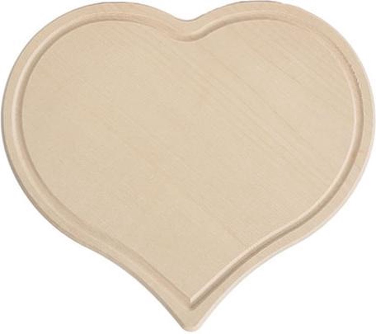 Hartvormig plankje met groef. Houtsoort: esdoorn. Afmetingen: ongeveer 24x22x1,5cm, elke plank is ietsje anders. De plank is te gebruiken als snijplank, als ontbijtbordje of om op te hangen. Met onze speciale kleurpotloden kunt u uw tekening ook inkleuren. Als u uw plankje vervolgens lakt blijft de kleur lang behouden. Zeer geschikt om te brandschilderen met uw Brenn Peter van Hobbyring.