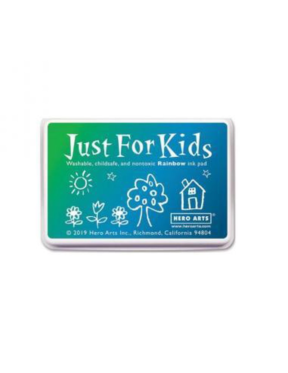 Een regenboog inktkussen met verloop tussen twee kleuren, blauw en groen. De inktkussens zijn speciaal samengesteld met ingrediënten die niet giftig zijn en goedgekeurd voor gebruik door kinderen. Afmeting 10 x 7 cm