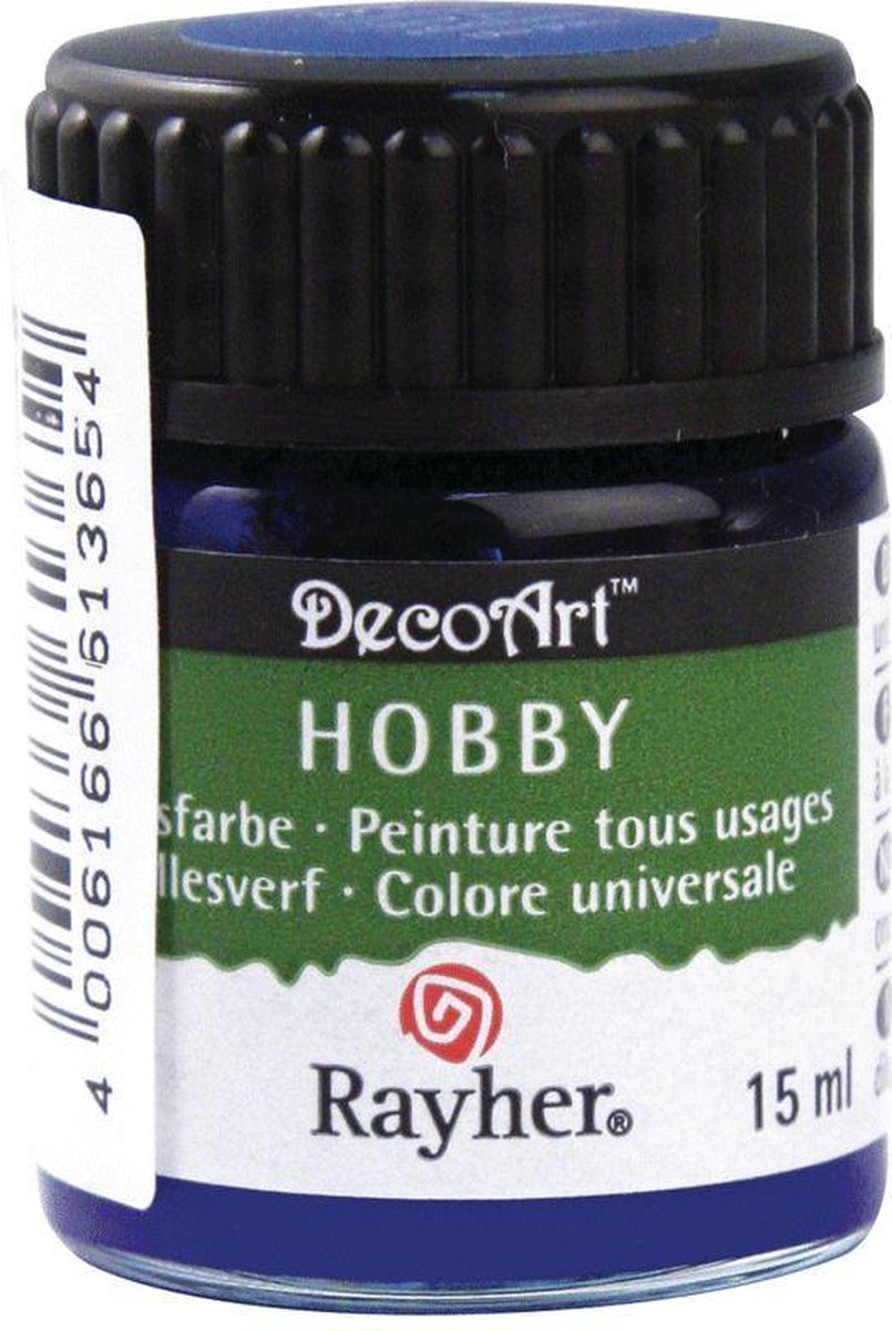 Hobby acrylverf blauw 15 ml. Een flacon allesverf met een inhoud van ongeveer 15 ml. Ideaal om bijvoorbeeld piepschuim, houten, papier mache of plastic artikelen mee te beschilderen.