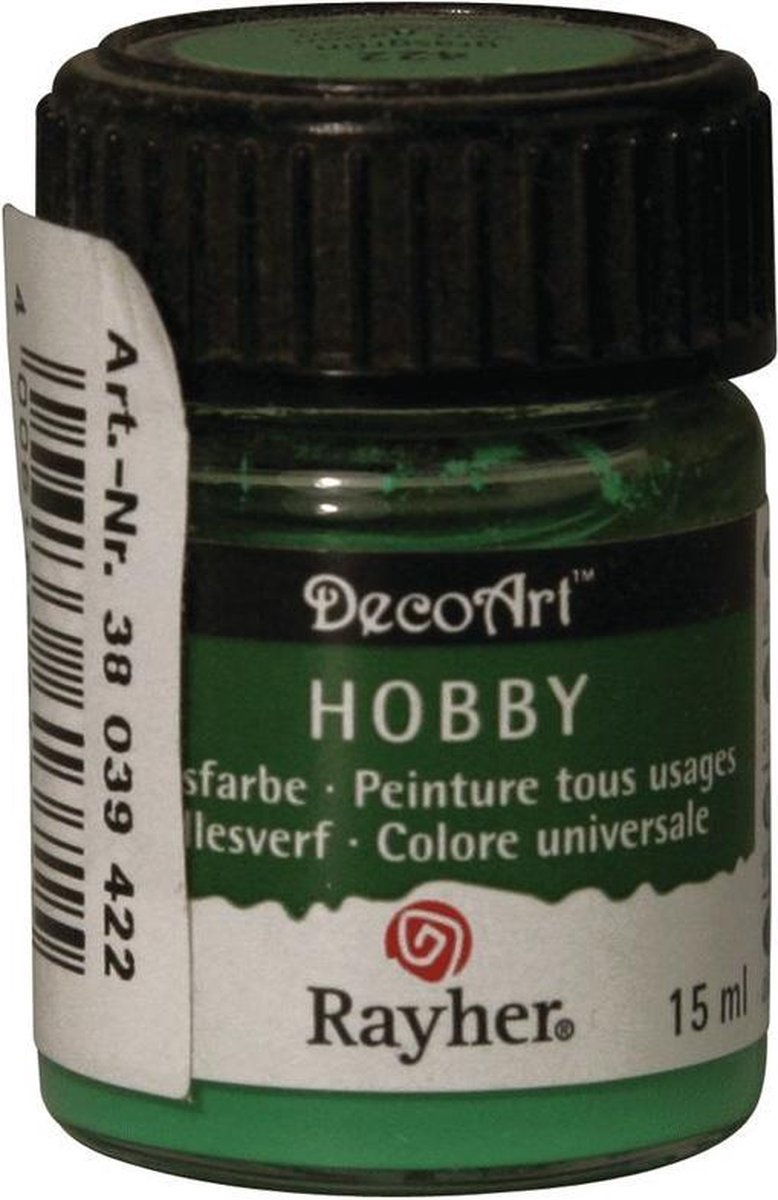 Hobby acrylverf groen 15 ml. Een flacon allesverf met een inhoud van ongeveer 15 ml. Ideaal om bijvoorbeeld piepschuim, houten, papier mache of plastic artikelen mee te beschilderen.