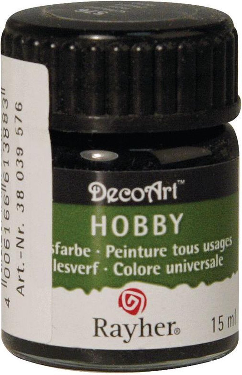 Hobby acrylverf zwart 15 ml. Een flacon allesverf met een inhoud van ongeveer 15 ml. Ideaal om bijvoorbeeld piepschuim, houten, papier mache of plastic artikelen mee te beschilderen.