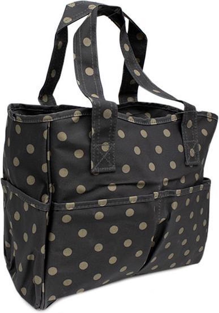 Hobbytas Charcoal Spot – Brei- en haakliefhebbers nemen hun project graag overal mee naartoe. En dat kan met deze handige hobbytas van Hobby Gift. De tas heeft een tijdloze print met polka dots en een PVC coating, die zorgt voor extra stevigheid en waardoor de tas gemakkelijk schoongeveegd kan worden. Naast een ruim vak en twee kleine vakken aan de binnenzijde, heeft de tas ook aan de buitenzijde diverse vakken voor het opbergen van kleine spulletjes. Het grote vak is afsluitbaar met een rits. Afmeting: 36.5 x 14 x 30 cm.