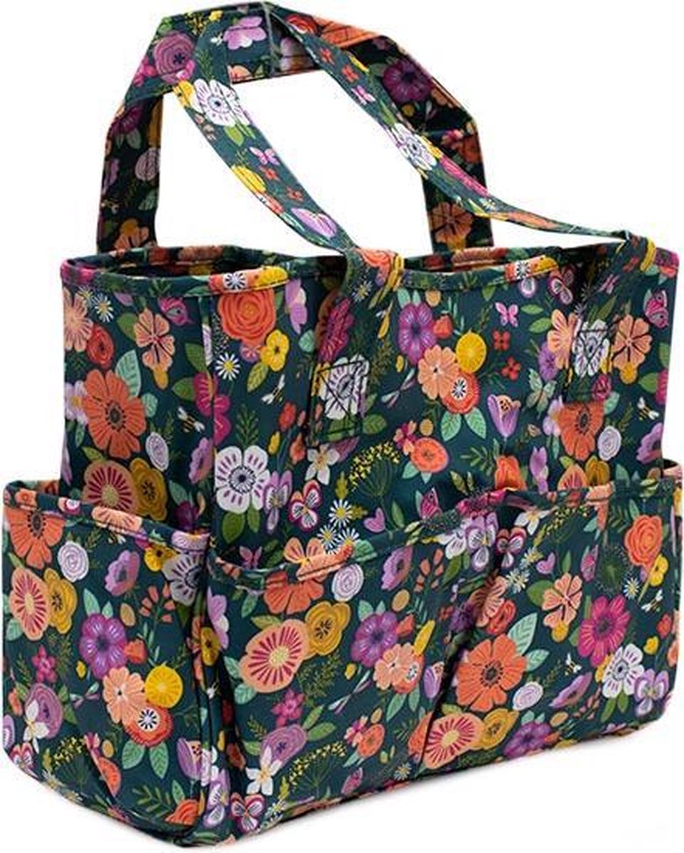 Hobbytas Floral Garden Teal – De perfecte tas voor al je handwerkspullen! Neem je brei- of haakwerk, garens, fournituren en andere hobbyspullen gemakkelijk mee in deze praktische hobbytas van Hobby Gift. De fleurige bloemenprint maakt de tas naast praktisch ook heel aantrekkelijk. Het hengsel is lang genoeg om de tas over je schouder te dragen. De tas is gemaakt van katoen en heeft een PVC coating. Afmeting 36.5 x 14 x 30 cm.