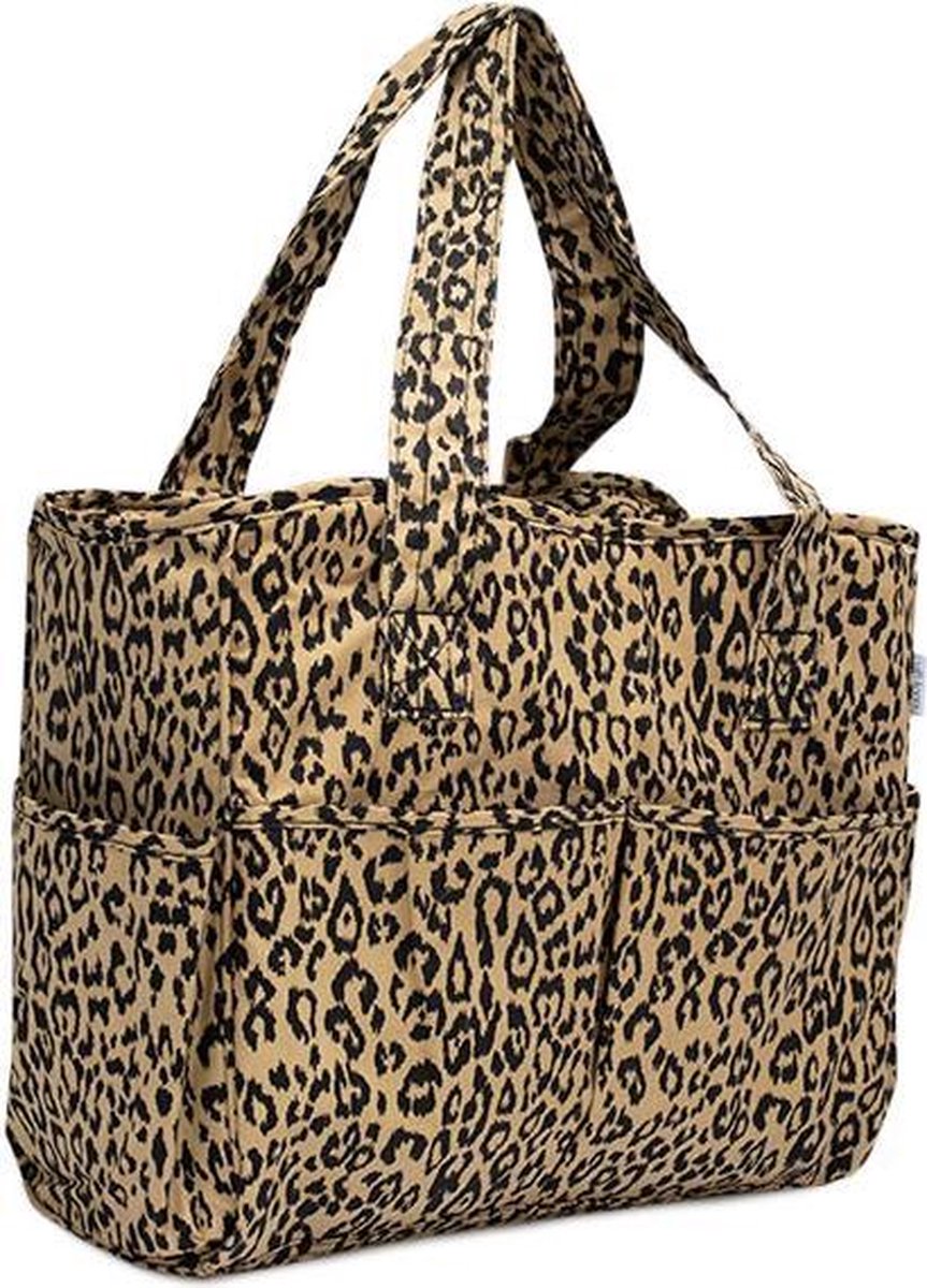 Hobbytas Leopard – Ben jij op zoek naar een stoere, trendy tas voor het meenemen van je brei- of haakwerk? Je hebt ‘m gevonden in deze beestachtig leuke brei- of haaktas met luipaardprint. De tas heeft een ruim, gevoerd hoofdvak, dat afsluitbaar is met een rits. Aan de buitenzijde van de tas zitten enkele steekvakken, waar je ook nog wat hobbyspullen geordend in kunt opbergen. Deze hobbytas is gemaakt van stevig katoen en heeft een PVC coating. Afmeting 36.5 x 14 x 30 cm.