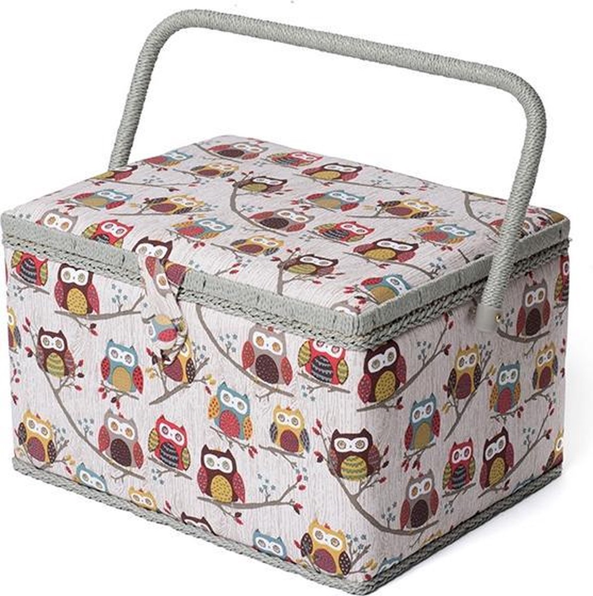Naaimand L Hoot - Al je hobby-benodigdheden netjes opgeruimd op één plek, hoe fijn is dat? In deze ruime naaimand met vrolijke opdruk berg je eenvoudig al je fournituren op. De mand is aan de binnekant gevoerd en beschikt over een uitneembaar plateau waar je kleine spullen als naalden, knopen en lintjes in kun ordenen. Berg voortaan je spulletjes netjes op in deze handige naaimand! Afmeting: 32 x 24 x 19 cm