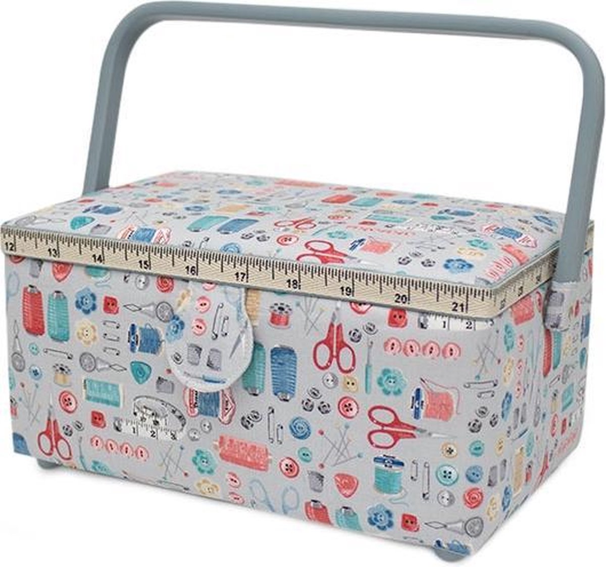 Naaimand Medium Stitch In Time – Verras een handwerkliefhebber met deze leuke naaimand! Het ideale accessoire voor het opbergen van al je fournituren. Dankzij de verschillende vakken in de uitneembare tray blijft het naaigerei fijn gesorteerd. Uiteraard kun je in deze naaimand ook je garens, lintjes, knoopjes en andere handwerkspullen kwijt. De naaikoffer is gevoerd met een zeeblauwe stof en heeft als extraatje nog een opbergzakje en speldenkussen aan de binnenzijde van de deksel. De magnetische sluiting en het kunststof handvat zorgen ervoor dat je de naaimand veilig en gemakkelijk kunt verplaatsen. Afmeting 25 x 18 x 13 cm.
