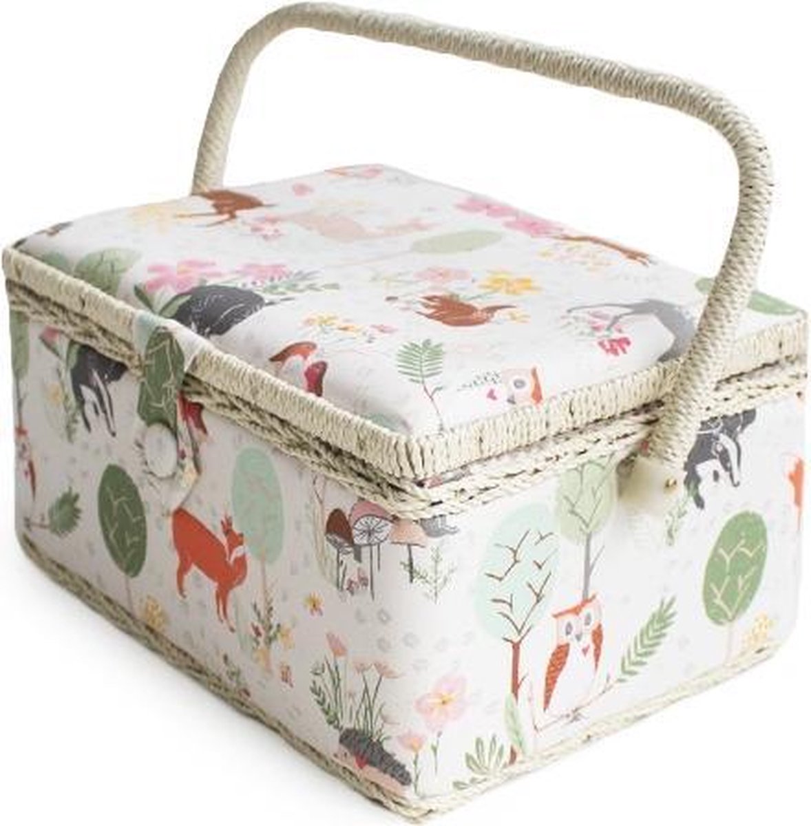 Naaimand Woodland M 2nd Edition - Deze medium naaimand met vrolijke opdruk is ideaal voor je fournituren. In het uitneembare kunststof plateau kun je netjes het fijne gerei sorteren, daaronder kun je je garen kwijt.
