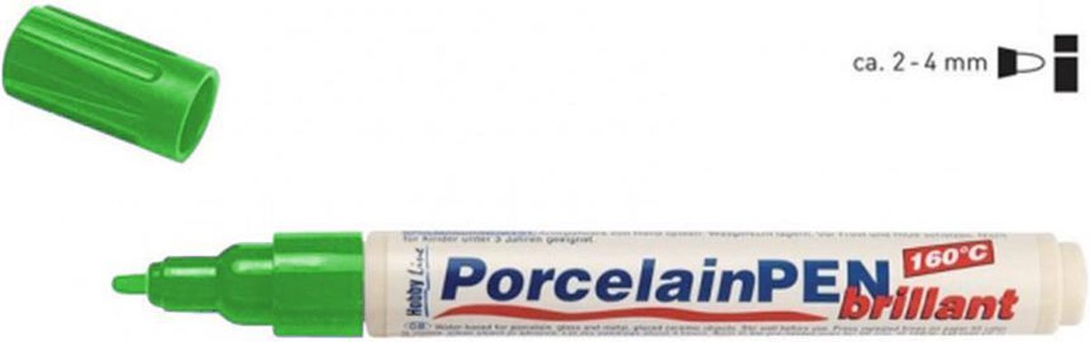 Hobby Line Lichtgroene Porcelain Pen - Glas- en porseleinstift op waterbasis geschikt voor glas, porselein, metaal en keramiek