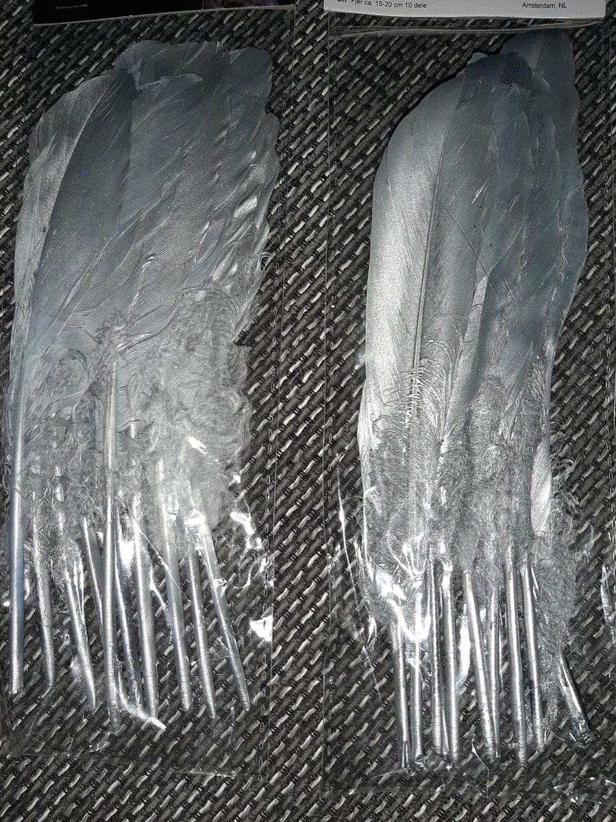 Set van 10 zilveren veren 15-20 cm Voor decoratie of knutselen Prijs is incl verzenden Foto is set voorkant en achterkant gefotogreerd