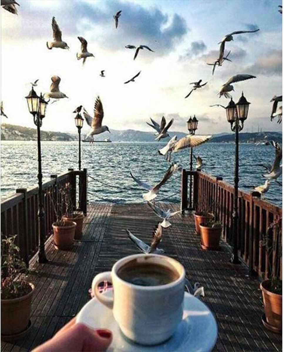 Hobbycave - Schilderen Op Nummer - Paint By Number - Voor Volwassenen En Kinderen - Verven Op Nummer - 40x50 CM - Hobbypakket - Compleet Pakket - Acrylverf - Meeuwen En Koffie