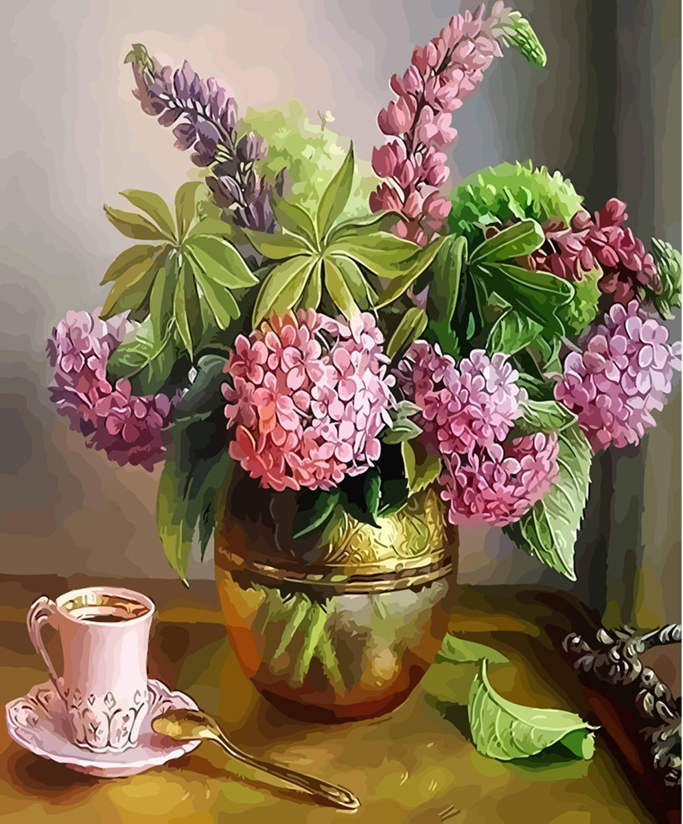 Hobbycave - Schilderen Op Nummer - Paint By Number - Voor Volwassenen En Kinderen - Verven Op Nummer - 40x50 CM - Hobbypakket - Compleet Pakket - Acrylverf - Vaas Bloemen