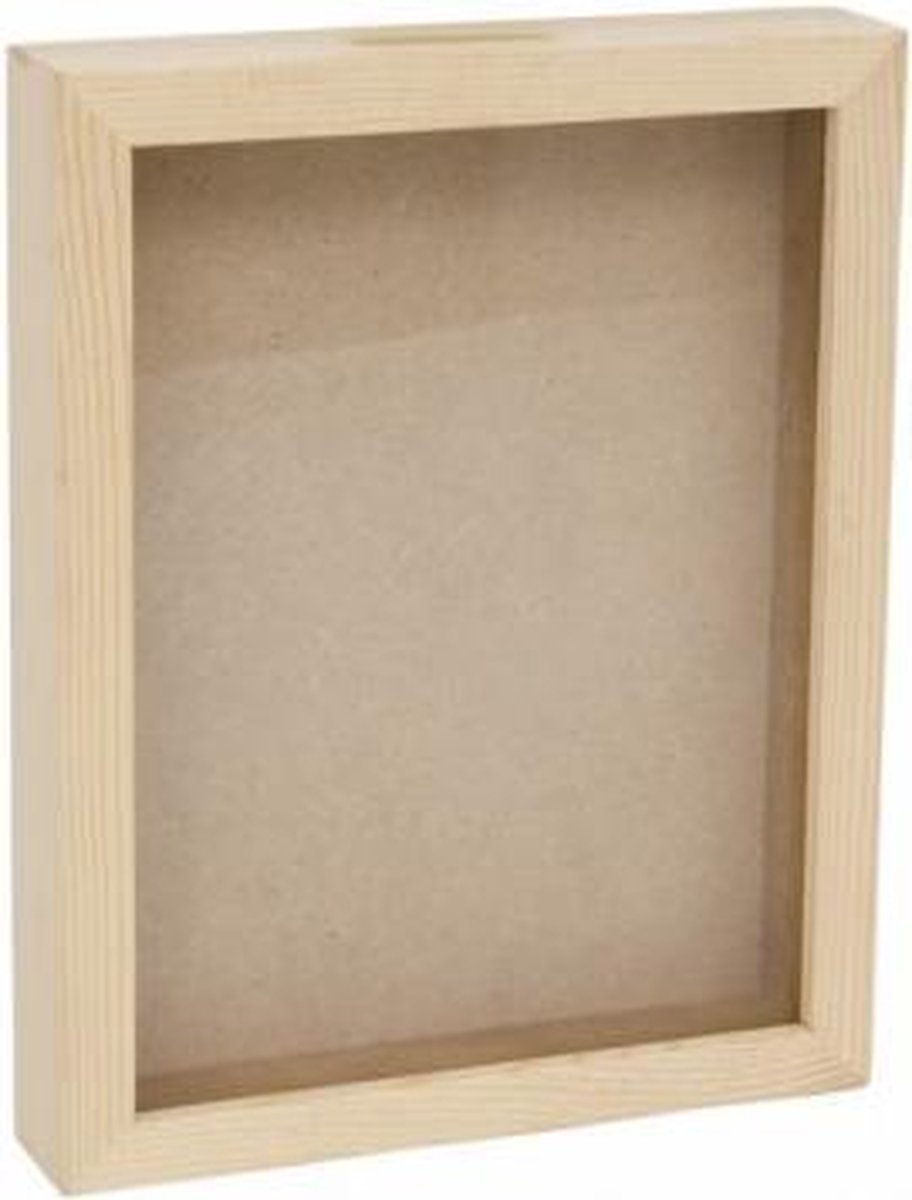 Unieke houten spaarpot. De achterkant is te verwijderen om te decoreren, met een doorzichtige voorkant zodat je je spaargeld kan zien toenemen
