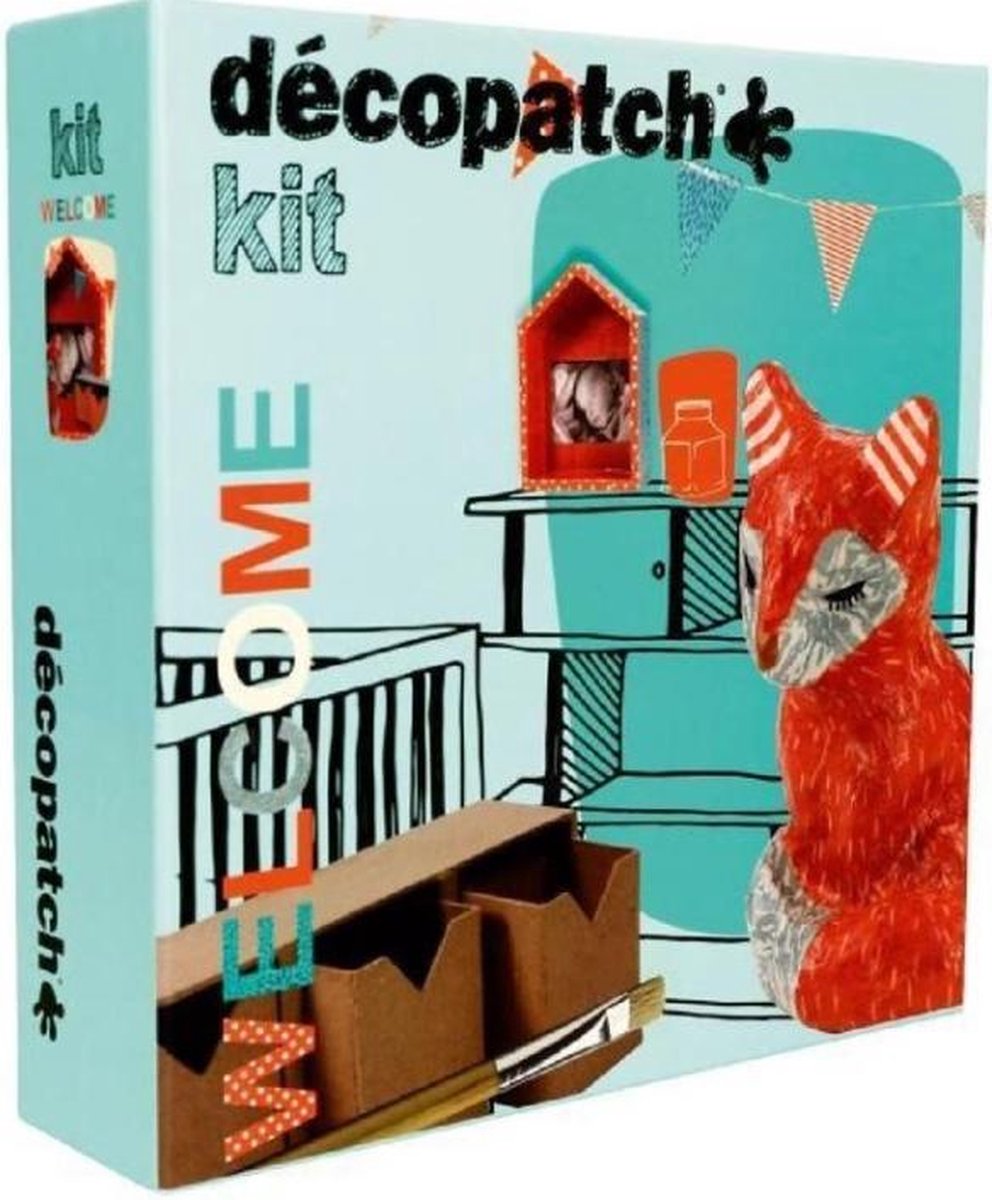 Ideaal om te leren over Décopatch of om cadeau te doen , de Welcome boy kit bevat alles wat je nodig hebt om een ??mooie Home deco set te maken voor bijvoorbeeld een kleine jongenskamer. Deze creatieve hobby is gemakkelijk, plezierig en vanaf jonge leeftijd voor iedereen toegankelijk. Het pakket bevat: * een fotolijst, een vos, een wimpelslinger en een opslag 3 lades, om te versieren, in papier-maché, * 5 Décopatch-vellen 30 x 40 cm, * 1 potje lijmvernis, * 1 penseel N ° 10 .