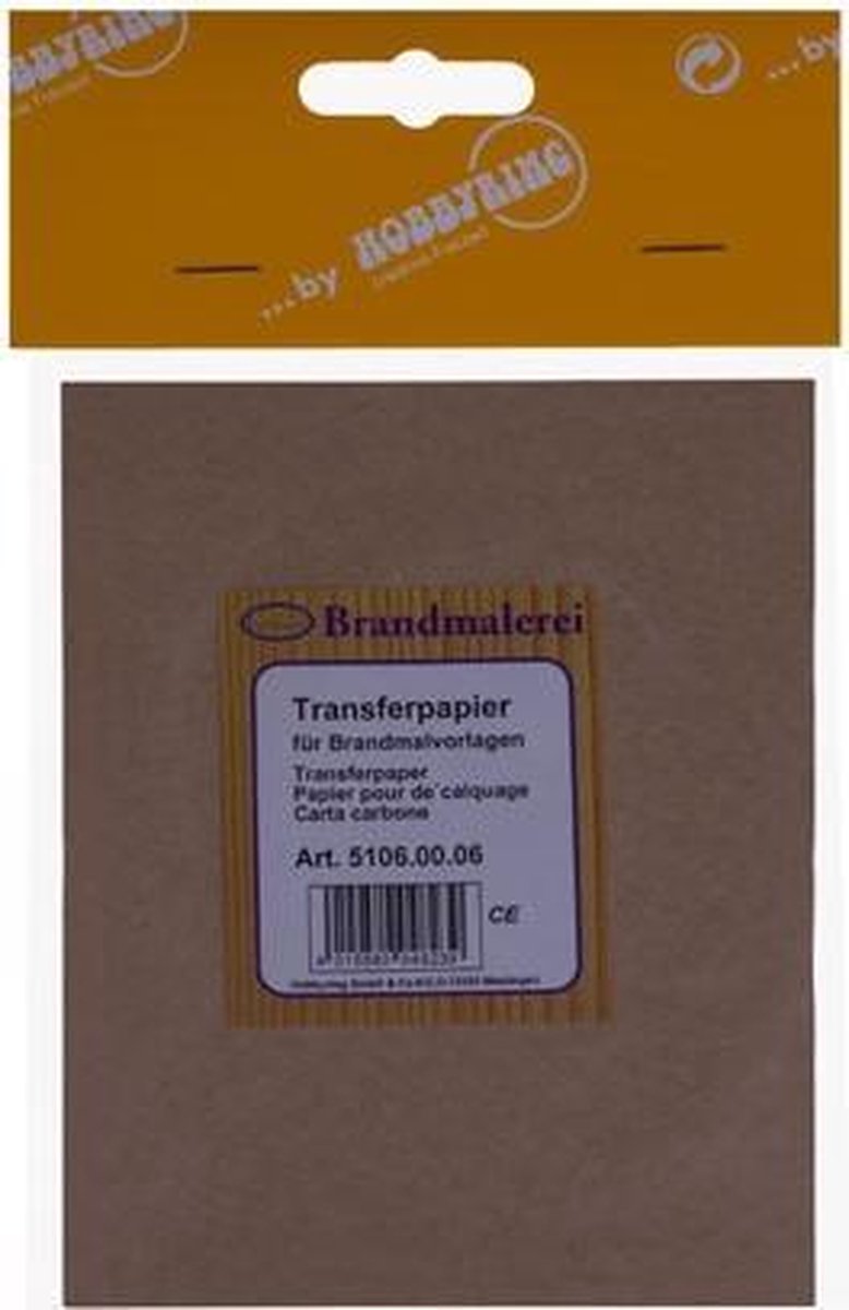 Om een tekening over te brengen op het werkstuk. De tekening kunt u eerst vergroten of verkleinen om de door u gewenste afmetingen te verkrijgen. Knip de tekening uit en plaats haar op het houten object. Schuif vervolgens het kalkpapier eronder, met de gele kant naar beneden en bevestig beide met plakband. Trek nu de tekening over met een niet te hard potlood (B of HB). De tekening staat nu op het hout en u kunt beginnen met brandschilderen.