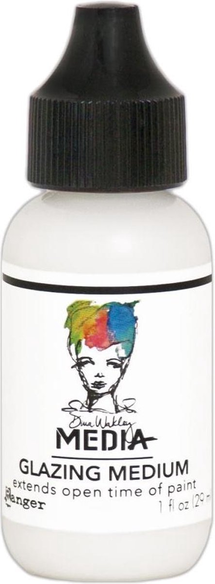 Dina Wakley Media-Glazing Medium. Ideaal voor het verlengen van de open tijd van acrylverf en het creëren van gelaagde glazuureffecten. Media Glazing Medium kan ook worden gebruikt als verfverdunner en om de transparantie van de verf te vergroten. Maak verflagen of voeg een glazuureffect toe aan projecten met gemengde media.