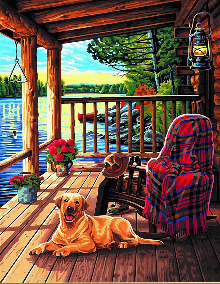 Hond bij de blokhut Schilderen op nummer. Je maakt Schilder op nummer schilderij in het formaat . Je ontvangt een los canvas met daarop enkel de lijnen en nummers. Door de genummerde vlakken in te schilderen met de juiste kleuren verf, creëer je je eigen schilderij. Door jou geschilderd met schilder op nummer! Dit schilderij wordt geleverd inclusief: -Canvas met lijnen en nummers -Voldoende potjes en kleuren acrylverf -Penseel. Schilderijen kunnen licht afwijken van de productafbeelding.
