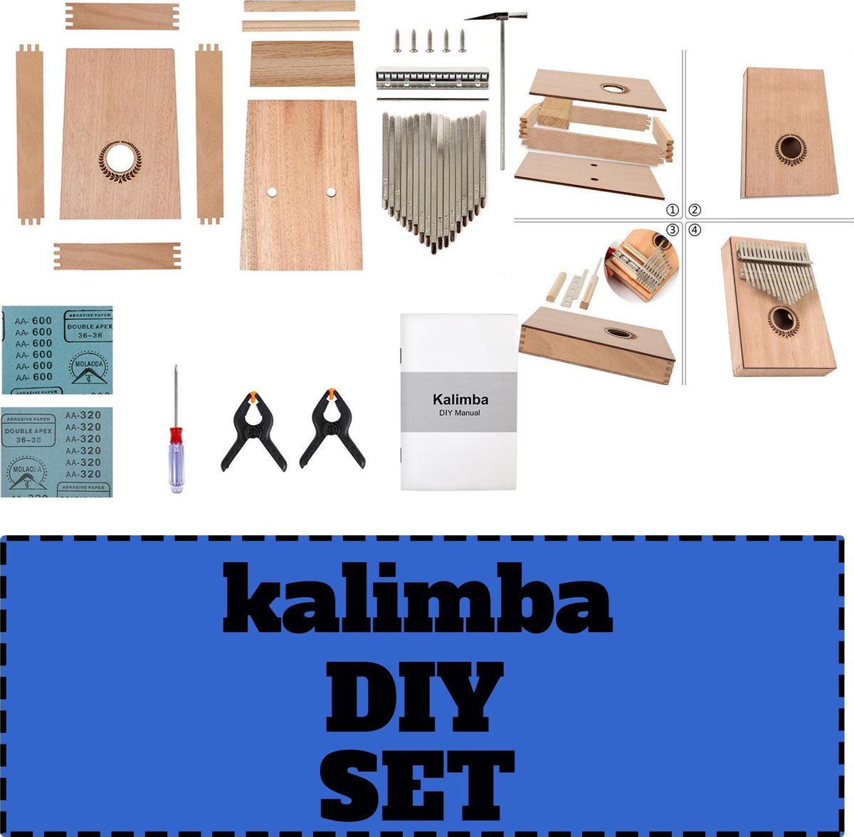 Kalimba DIY Kit 17 keys thumb piano & finger piano with Manual Tools: Tuner, Hammer and Paint Assembly Step The best handcraft & painting & birthday present Enjoy a splendid and wonderful family time with your kids&children Specification Item Name: Kalimba DIY Kit Keys: 17 Material: Solid Mahogany Sandpaper: #320 #600 Package includes: 1 x soundboard 1 x backboard 2 x sideboard 1 x top board 1 x bottom board 1 x rim 1 x nut 1 x saddle 1 x saddle bar 1 x vibrating bar 1 x tines 5 x screws 2 x clamps 2 x #320 sandpaper 2 x #600 sandpaper 1 x screw drive 1 x tuner hammer 1 x Manual