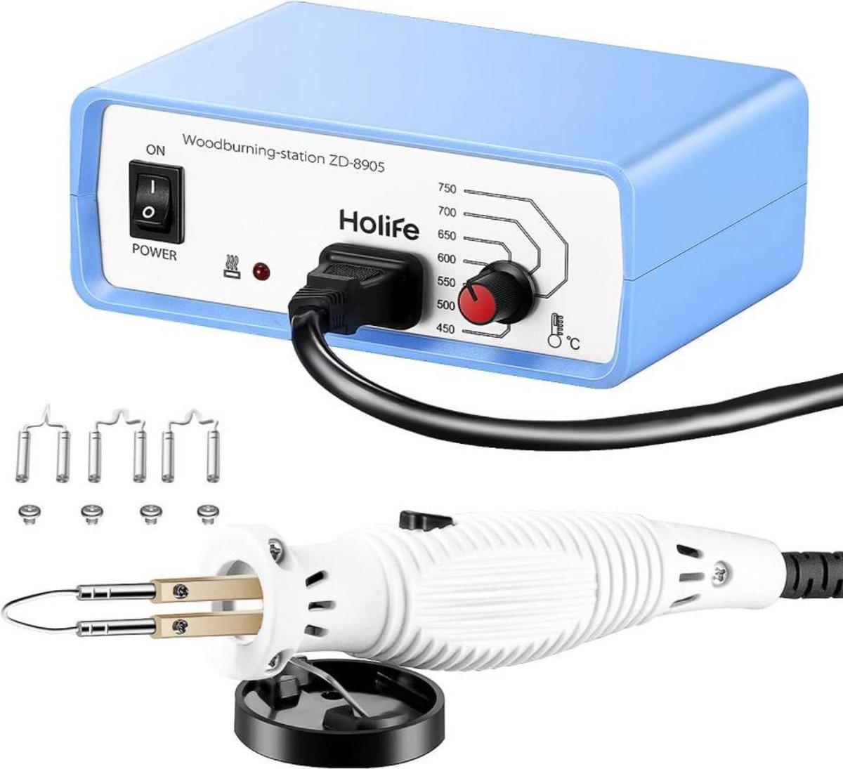 Houtbranden soldeerbout station online kopen bij bol.com 40W brander met transformator voor snelle verwarming: Dankzij de transformator met 40Wvermogen is de elektronisch aangestuurde brander binnen 10 seconden klaar voor gebruik. Het biedt de constante warmte die nodig is om het brandende werk gelijkmatig te krijgen. gemakkelijker verandert. Breed temperatuurverstellingsbereik: 450°C-750°C verstelbaar. Door middel van een temperatuurregelaar kunt u de temperatuur voor verschillende houtsoorten en andere soorten materiaal continu aanpassen tussen 450-750°C. Geschikt voor hout, leer, kurk of hoorn. Veilig werken door middel van dubbele schakelaars: Naast de aan/uit-schakelaar op het station is het ook voorzien van een extra aan/uit schakelaar op het handvat. Houd de knop lang ingedrukt om hem in te schakelen en laat de knop los om deze uit te schakelen Hittebestendige handgreep, cilindervorm ontwerp voor een betere thermische isolatie. De hittebestendige premium handgreep zorgt
