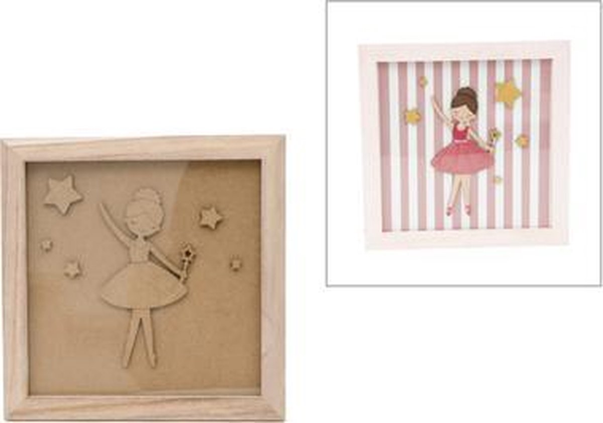 Houten lijst met daarin een ballerina van MDF. Beide kunnen naar eigen inzicht gedecoreerd worden