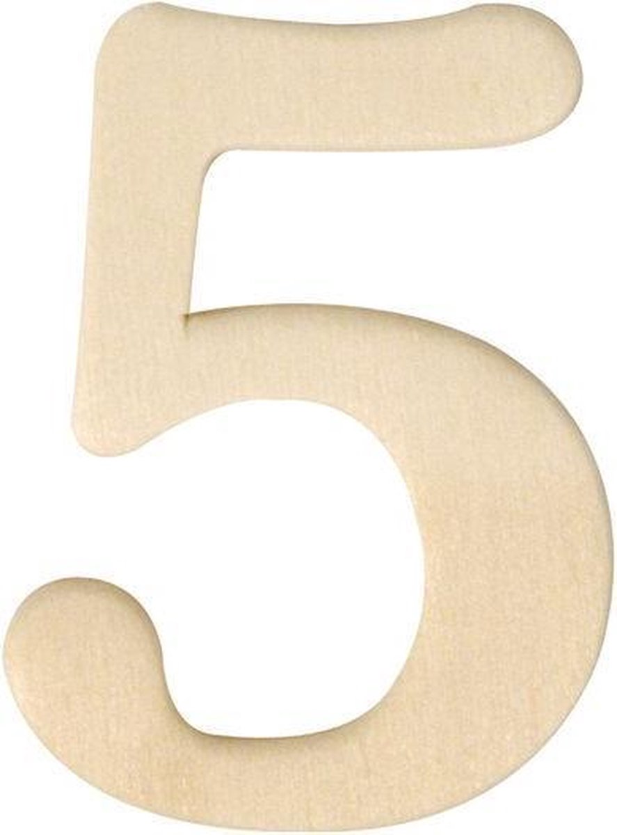 Houten cijfer 5 van 4 cm. Houten cijfer 5 om mee te decoreren. De cijfer heeft een formaat van ongeveer 4 cm in hoogte.