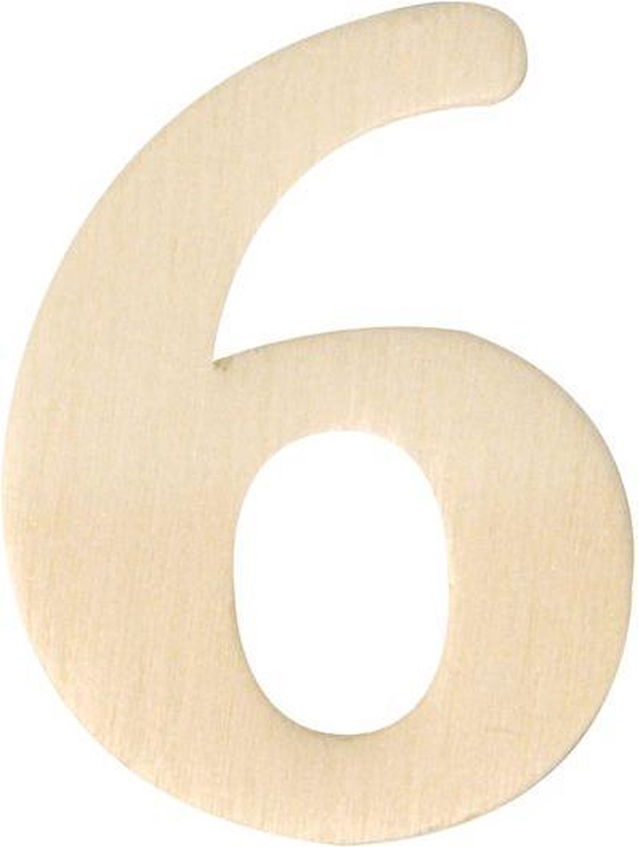 Houten cijfer 6 van 4 cm. Houten cijfer 6 om mee te decoreren. De cijfer heeft een formaat van ongeveer 4 cm in hoogte.