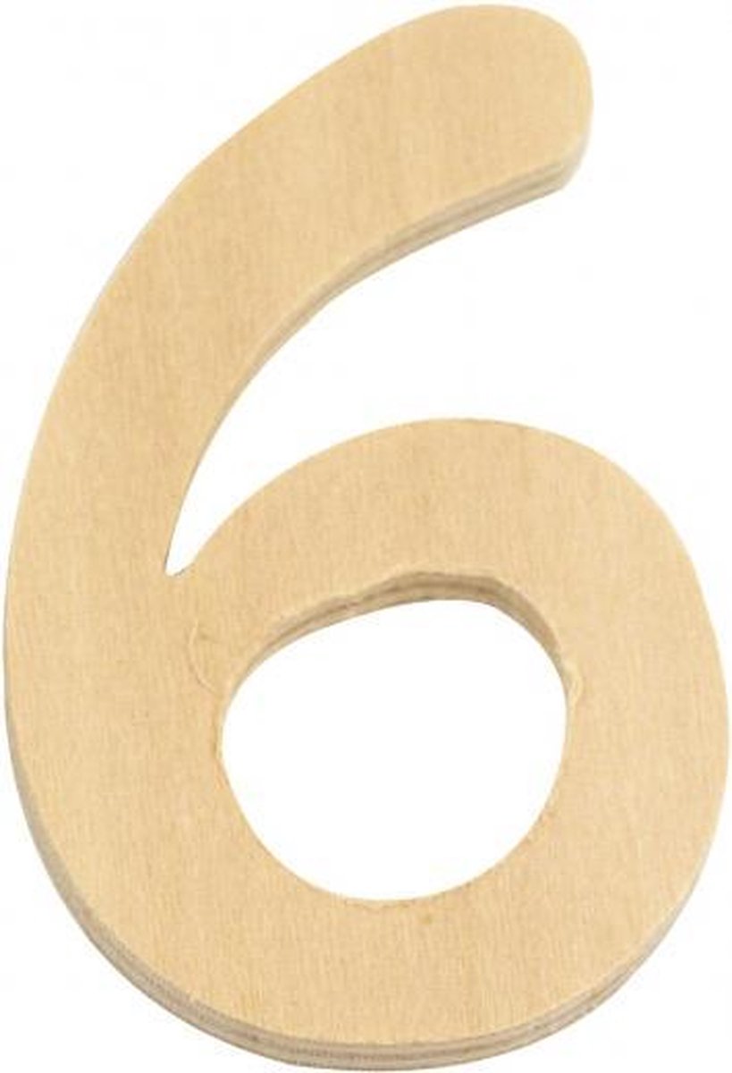 Houten cijfer 6 van 6 cm. Houten cijfer 6 om mee te decoreren. De cijfer heeft een formaat van ongeveer 6 cm in hoogte.