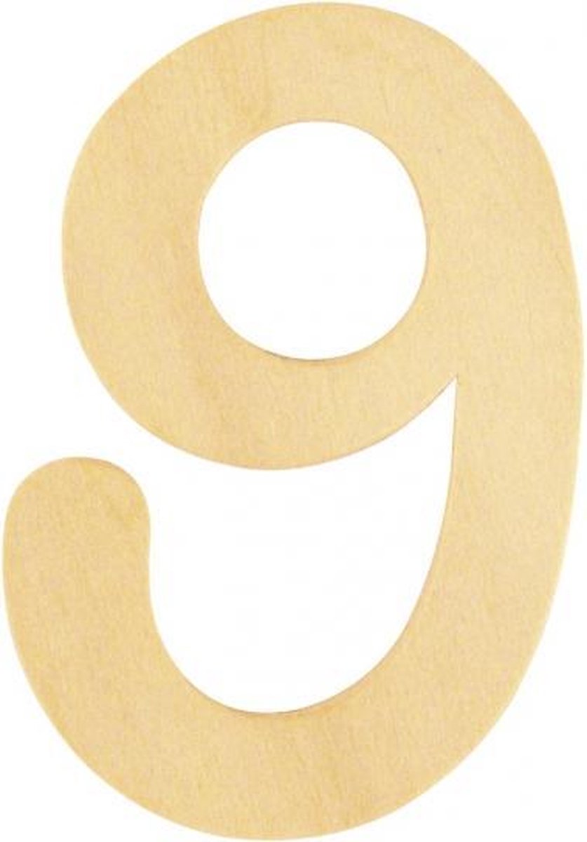 Houten cijfer 9 van 6 cm. Houten cijfer 9 om mee te decoreren. De cijfer heeft een formaat van ongeveer 6 cm in hoogte.