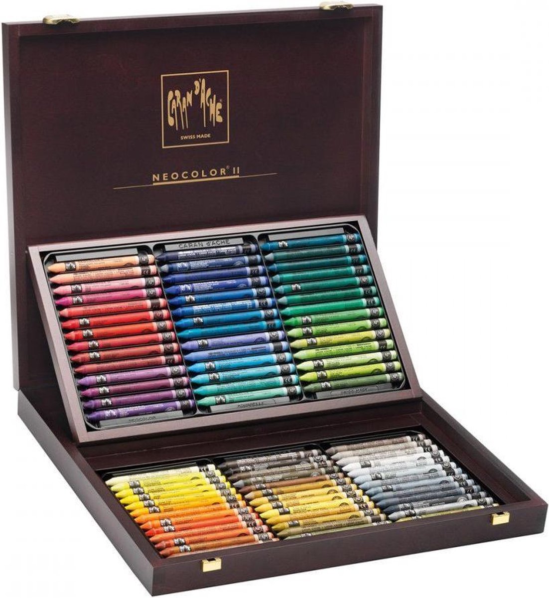Un coffret unique pour découvrir la richesse d’utilisation complémentaire des deux icônes : les pastels à la cire NEOCOLOR® I et II. Un cadeau idéal pour tous les artistes épris de qualité. DÉTAILS TECHNIQUES DÉTAILS DU PASTEL NEOCOLOR® I Pastel à la cire permanent de qualité supérieure Résistant à l’eau Texture onctueuse Pouvoir couvrant supérieur Excellente tenue à la lumière Couleurs lumineuses Diamètre Ø 8.65 mm DÉTAILS DU PASTEL NEOCOLOR® II Pastel à la cire aquarellable Texture tendre et veloutée, ne poudroyant pas Pouvoir couvrant supérieur Excellente tenue à la lumière Couleurs lumineuses Diamètre Ø 8.65 mm DÉTAILS DU COFFRET Essence de bois bouleau de qualité supérieure avec vernis de protection Couleur acajou foncé Sérigraphie couleur or (extérieur et intérieur) Système de fermeture couleur or Dimensions : 29.1 x 22.4 x 4.2 cm TECHNIQUES D'UTILISATION DU NEOCOLOR® I Dessins à sec sur tout type de matériau (papier, carton, verre,