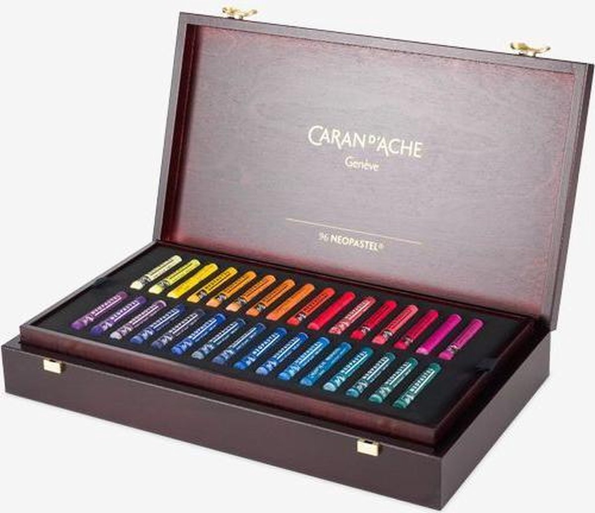 DÉTAILS DU PASTEL Pastel à l'huile rond permanent Diamètre : 10 mm x 68 mm Texture tendre et veloutée qui ne poudroie pas Indication de la tenue à la lumière et numéro d'identification de la couleur Pigments extra-fins et huile inerte Soluble à l'essence de térébenthine DÉTAILS DU COFFRET Essence de bois bouleau et hêtre de qualité supérieure avec vernis de protection Couleur acajou foncé, dimensions 19.5 x 41.5 x 3.5 cm Sérigraphie couleur or (extérieur et intérieur), système de fermeture couleur or 3 plateaux amovibles de 32 pastels chacun avec des cales en mousse de haute densité pour un maintien optimal TECHNIQUES D'UTILISATION Utilisation flexible : application sur la pointe, le biseau ou l'aplat du pastel Mélanges illimités, dégradés, utilisation d’un patron, imprégner et colorier, travail « au doigt », multiples supports NORMES LÉGALES Swiss Made, ASTM D-4236 RÉFÉRENCE DU PRODUIT Réf. 7400.996
