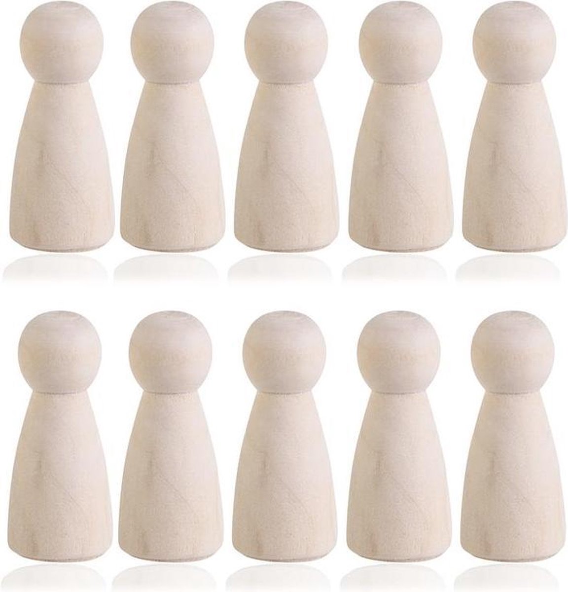 Een set van 20 houten pionnen met een hoogte van 4,3 CM. Je kunt ze schilderen en versieren en er natuurlijk een spelletje mee spelen. Inhoud: 20 stuks Afmeting: 43mm x 15mm